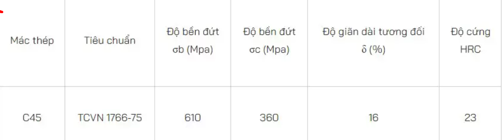 Mác thép: S45C (theo tiêu chuẩn JIS G4051 – Nhật Bản)