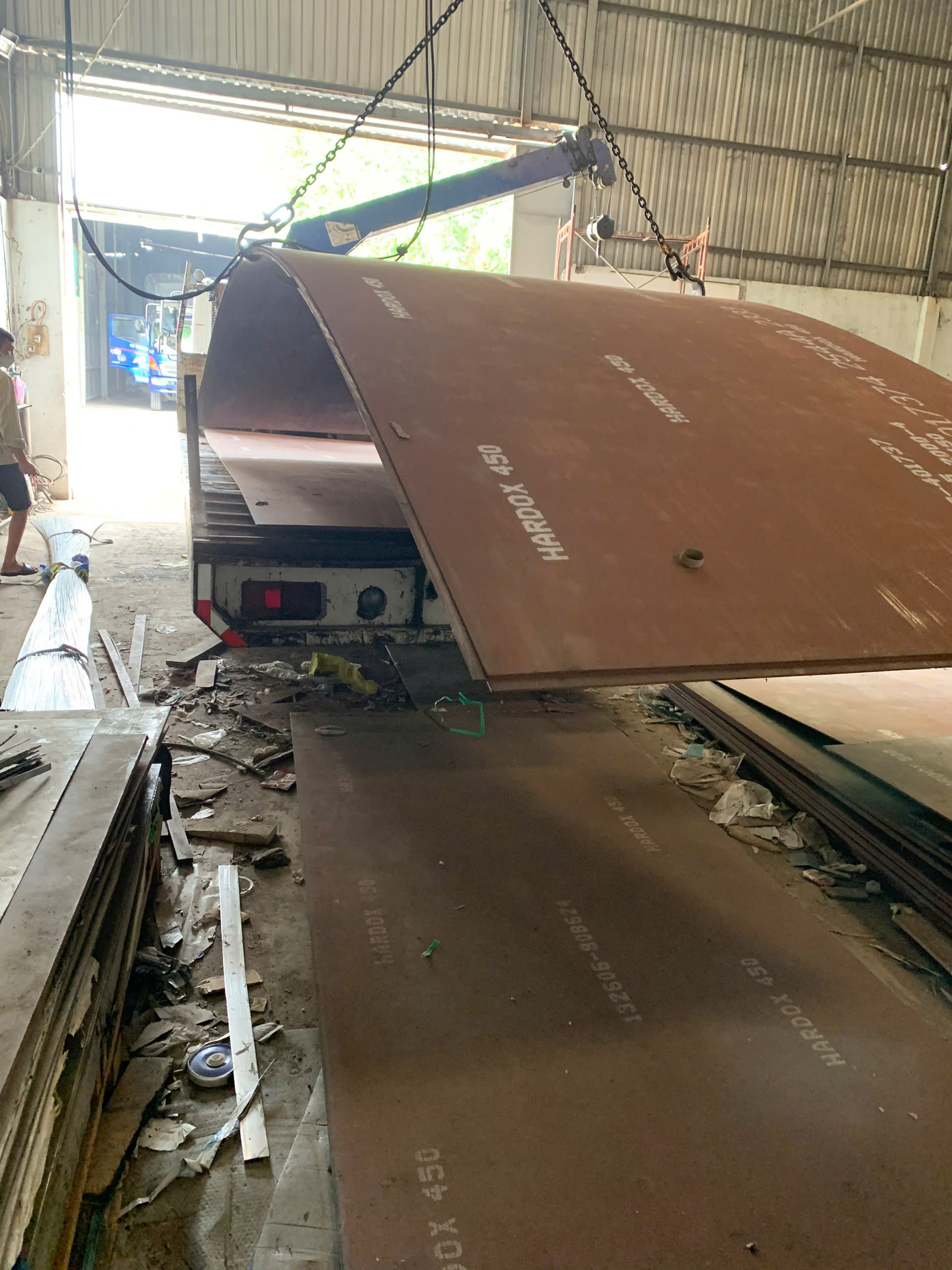 | Hardox 450 | ~450 HBW | Máy nghiền, băng tải, phễu liệu |